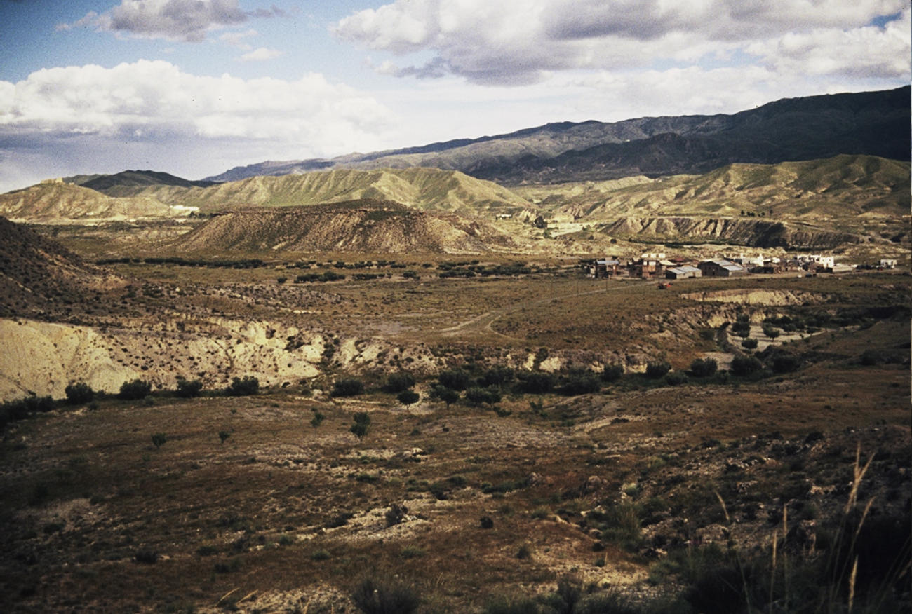 Tabernas (Almeria), Poblado del Oeste Texas Hollywood, vers avril 1989-1990. Tout à gauche, sur une colline, le Castillo de Tabernas.