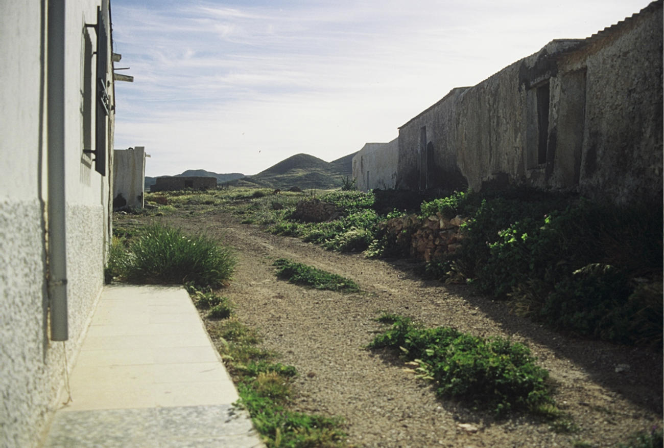 Los Albaricoques, Calle de Rodalquilar, Campos de Nijar (Almeria), vers avril 1990.