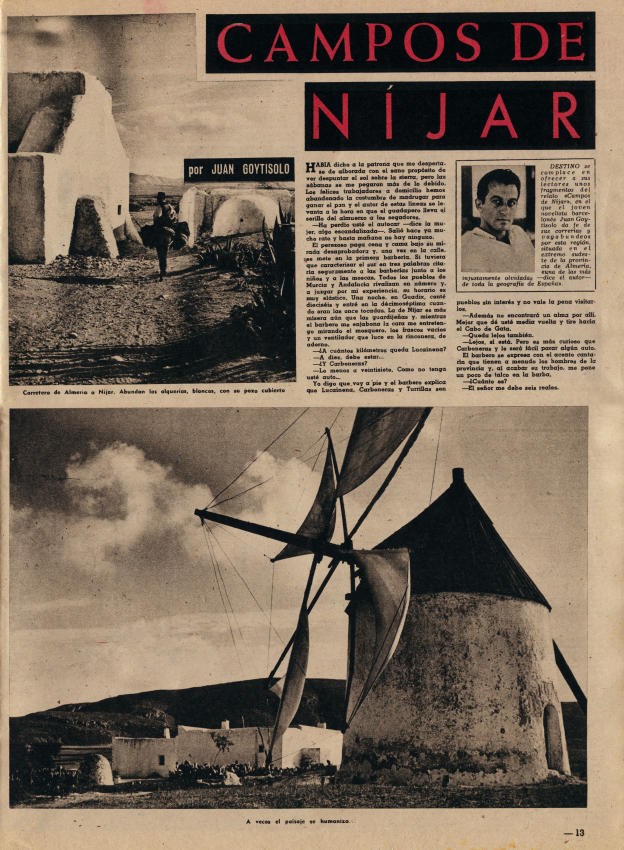 Destino, N° 1170, 9 janvier 1960. Extraits du récit de Juan Goytisolo, Campos de Nijar, illustré des photographies de Vicente Aranda (1959).